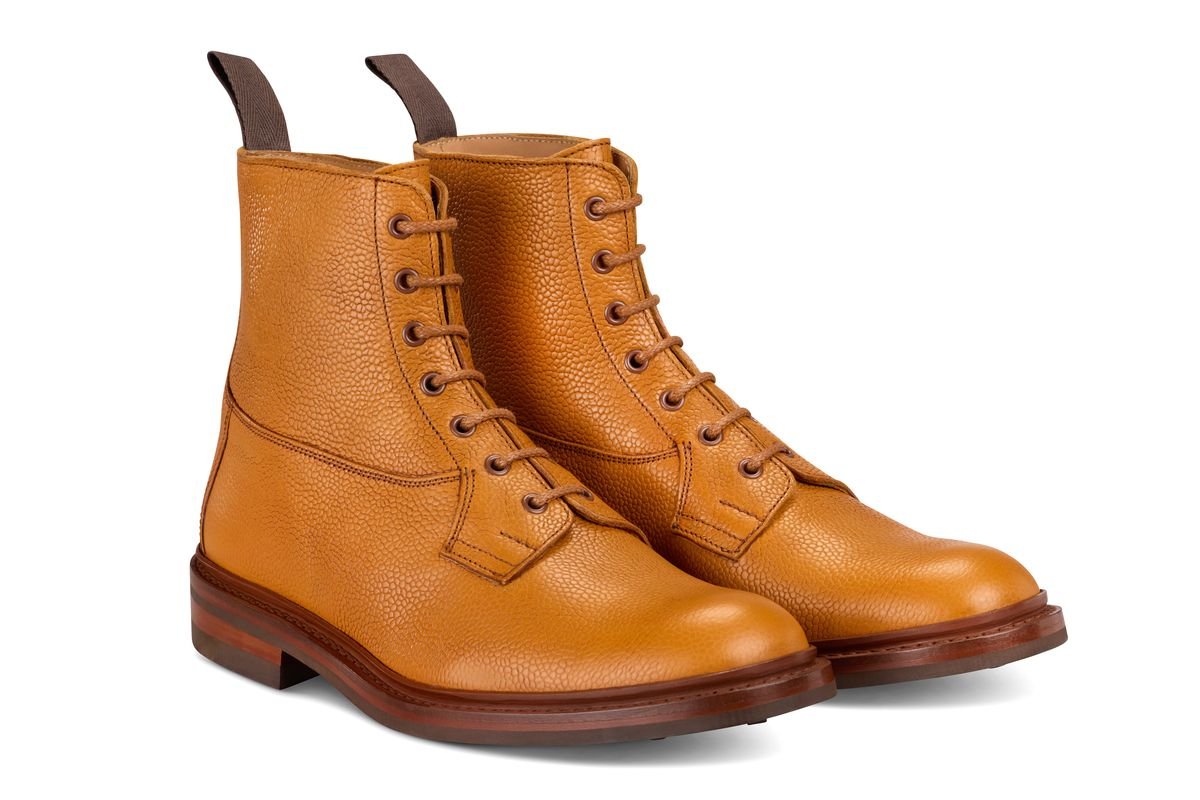Our men’s Burford country boot is purposely unassuming in its design; a clean seven eyelet derby ankle boot. The Burford is typically ‘Tricker’s’ in its build: a half bellows tongue is folded and attached to the shoe to provide a watertight seal, the storm welt provide a watertight bond between the sole and upper.