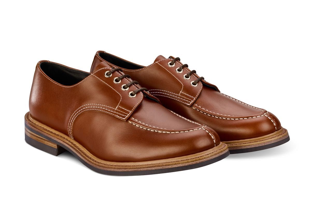 A derby shoe is characterised by open lacing, which means that the eyelets for the shoelaces are sewn on top of the vamp (the upper part of the boot). This type of lacing allows the boot to be adjusted for a comfortable fit and makes it easier to put on and take off than a boot with closed lacing, such as an Oxford.