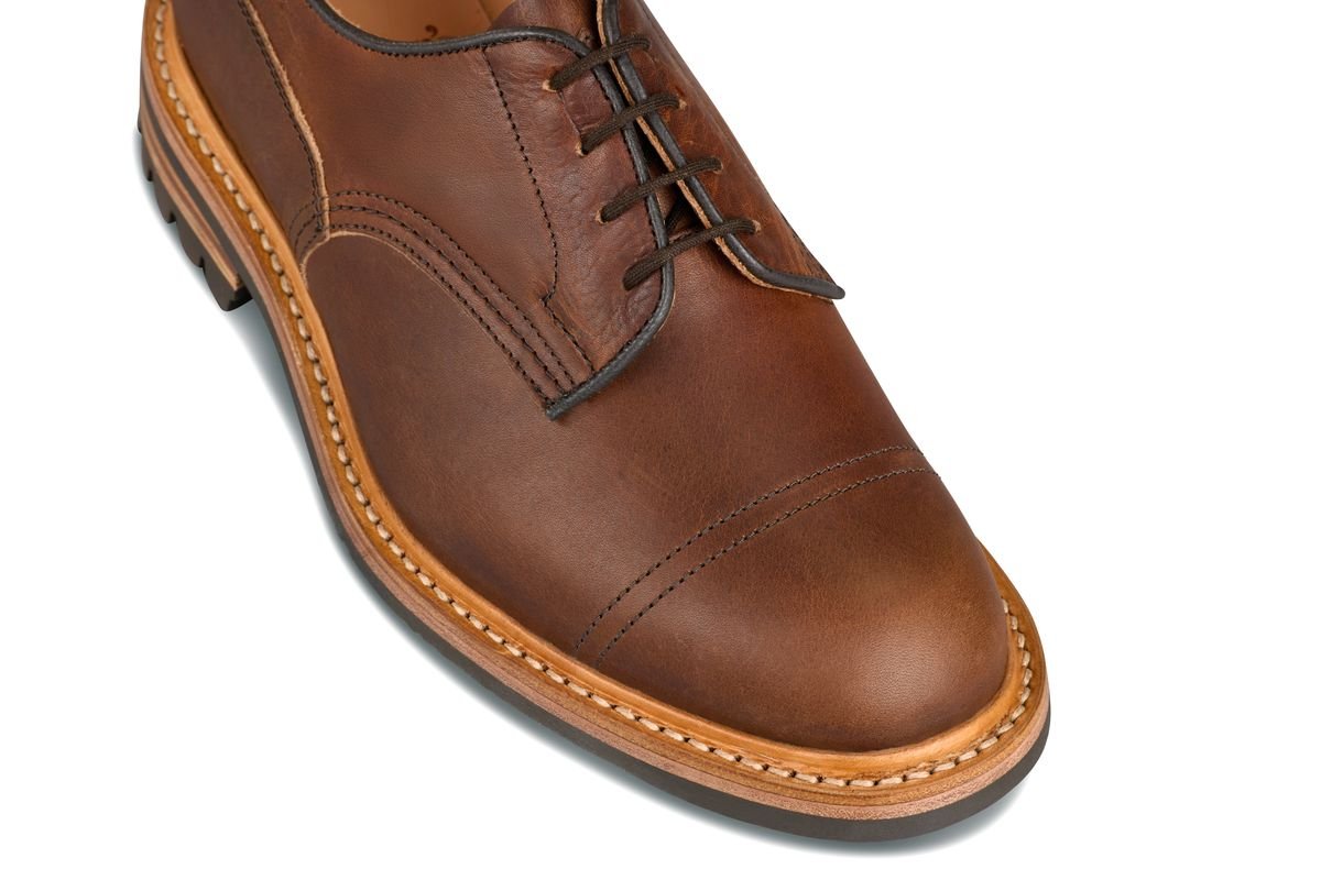 The Matlock takes the immovable spirit of the Tricker’s Country Boot and distills it into a robust Cap-Toe Derby. It is designed for those who require the legendary protection of a storm-welted boot but prefer the freedom and versatility of a shoe. This isn't just a "plain" derby; the added cap-toe stitching provides an extra layer of structure and a nod to traditional workwear aesthetics.