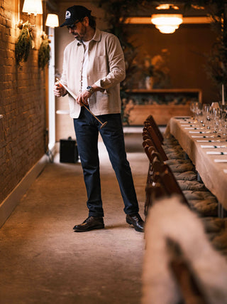Our latest Classic Men’s Look considers the role of bringing people together and the demands that come with it. Shot with chef, author and restaurateur Simon Stallard, the look follows him as he prepares for one of his open-fire dining experiences, where long hours, movement and hospitality are part of the rhythm of the day. At the centre of the look is the Tricker’s Stow Country Boot, a cornerstone of the Tricker’s range, designed to balance function and style for days that naturally roll into the evening.