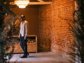 Simon wears: E8 Slim Tapered Indigo 14oz Japanese Raw Selvedge Jeans, E18 Japanese Twill Uniform Shirt, SW17 Lightweight T-Shirt; all from Blackhorse Lane Ateliers.