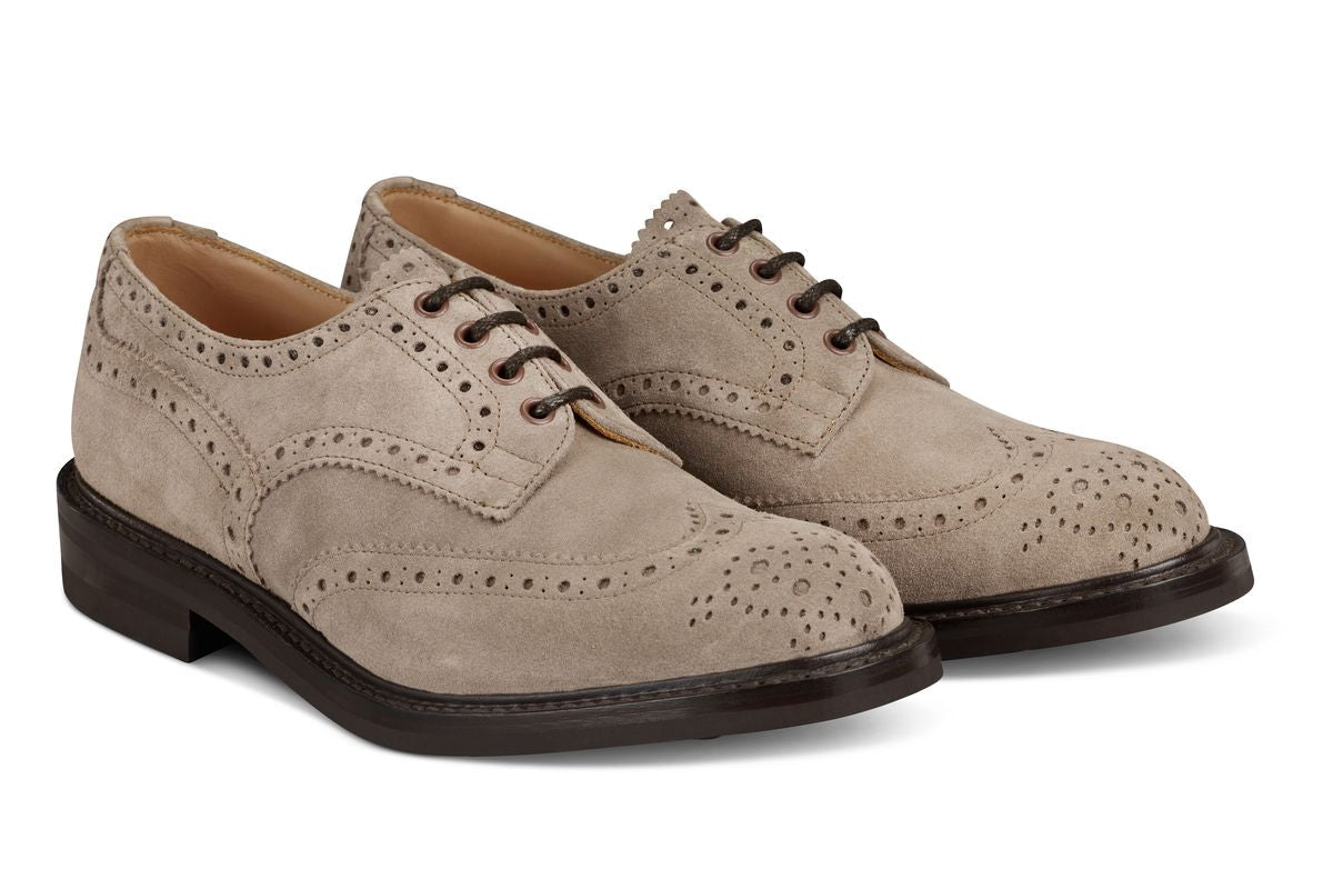 Technical Foundation Despite its elegant upper, this Bourton remains a true country shoe at heart. It is fitted with a Dainite Rubber Sole, providing discrete traction and a streamlined profile that is perfectly suited for city pavements and formal settings alike. The shoe is finished with a dark, contrasting storm welt and tonal stitching, grounding the light Caribou upper with a sense of structural authority.